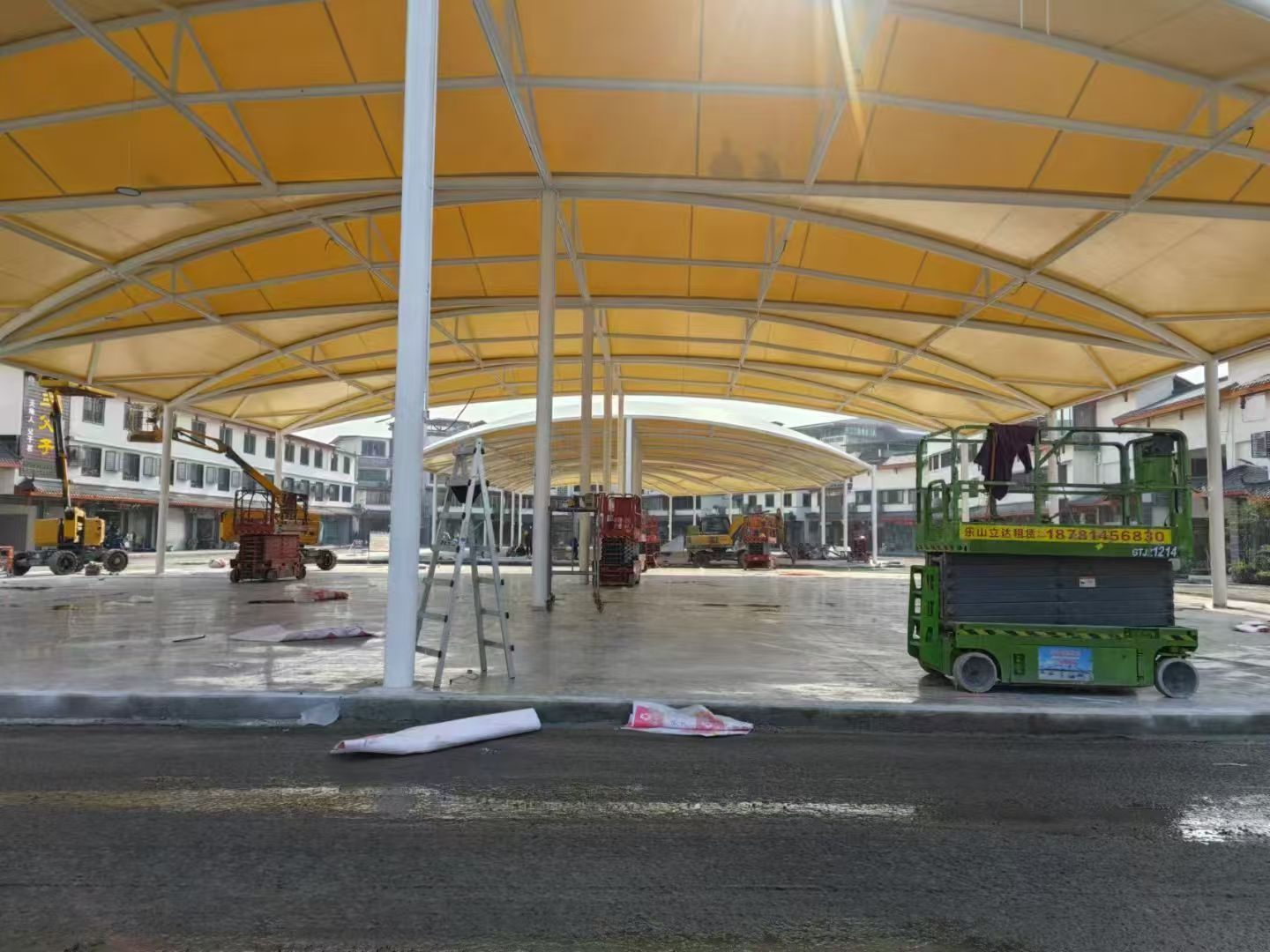 原有峨眉山市茶叶市场张拉膜更换,膜结构项目翻新,更换膜材,加固钢结构骨架,钢结构骨架翻新